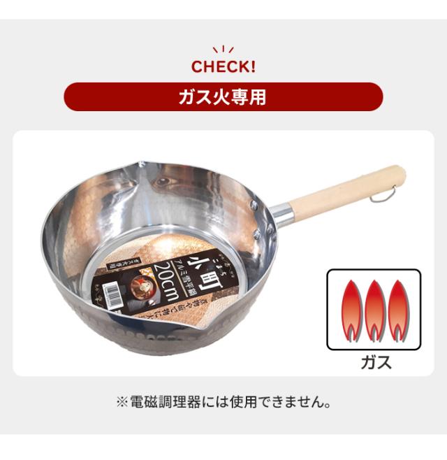 | 煮物や茹で物に大活躍のアルミ製雪平鍋。 アルミ鍋はステンレスや鉄に比べて熱伝導率が高く、お湯を沸かす時間が短く済むので、ゆで卵や野菜の下茹でに最適。 ガス火専用。 |