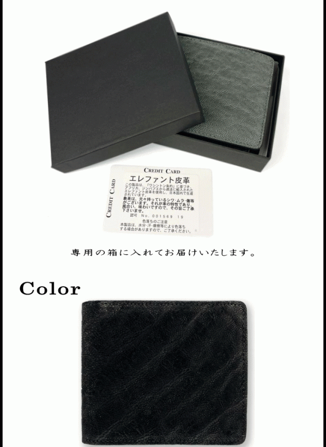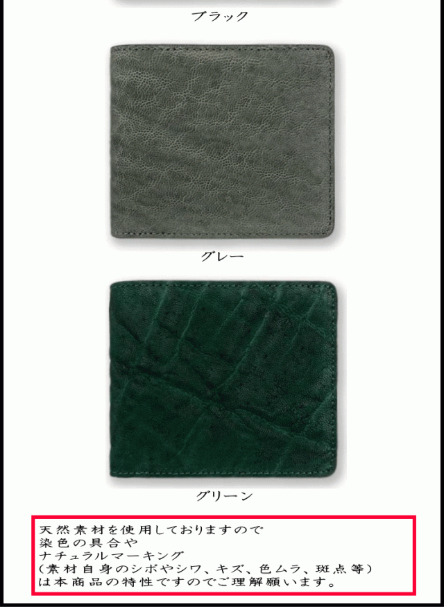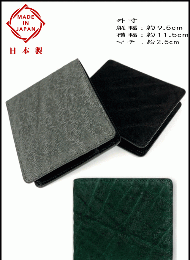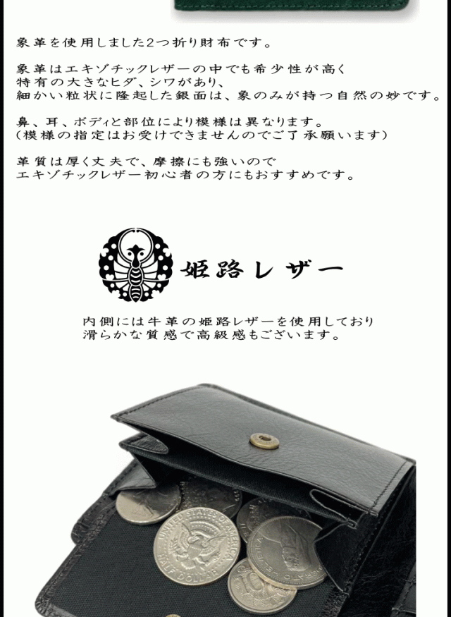 財布 象革 エレファントレザー 日本製 姫路レザー 本革 2つ折り 財布 小銭入れ有り 5171 ゾウ革