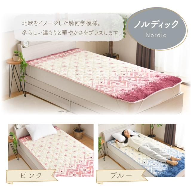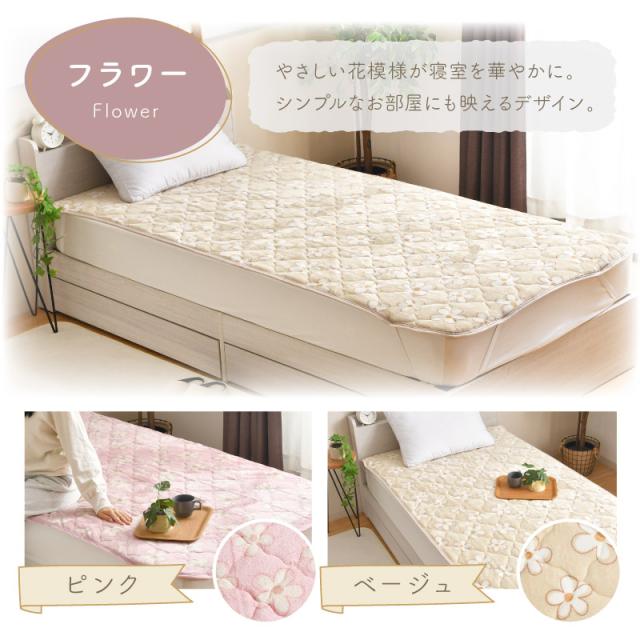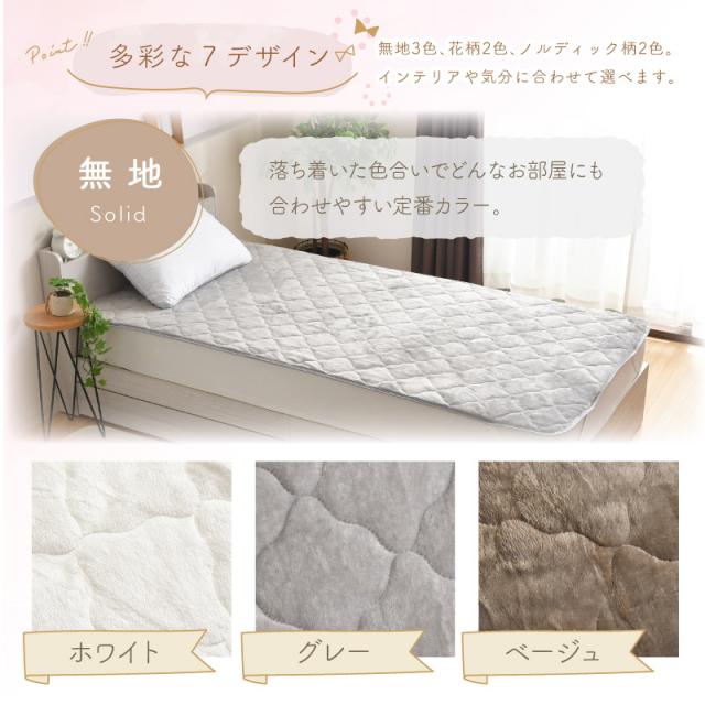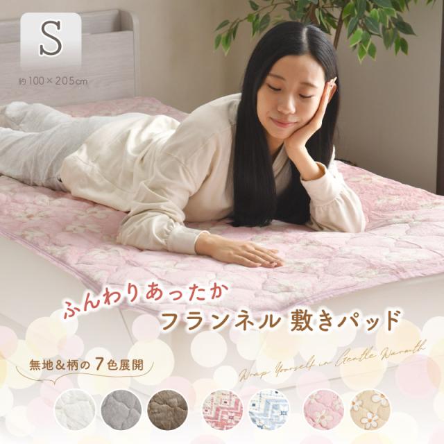 敷きパッド フランネル シングル 100×205cm 無地 柄 選べる7種 あったか 冬 敷パッド おしゃれ かわいい 洗える ホワイト グレー ベージュ ノルディックピンク ノルディックブルー フラワーピンク フラワーベージュ