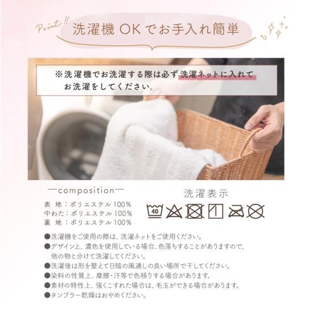 ■色落ちする場合がありますので他のものと一緒に洗わないでください。 ■塩素系漂白剤のご使用はおやめください。 ■洗剤は無蛍光洗剤をご使用ください。 ■お洗濯の際は洗濯ネットをご使用ください。