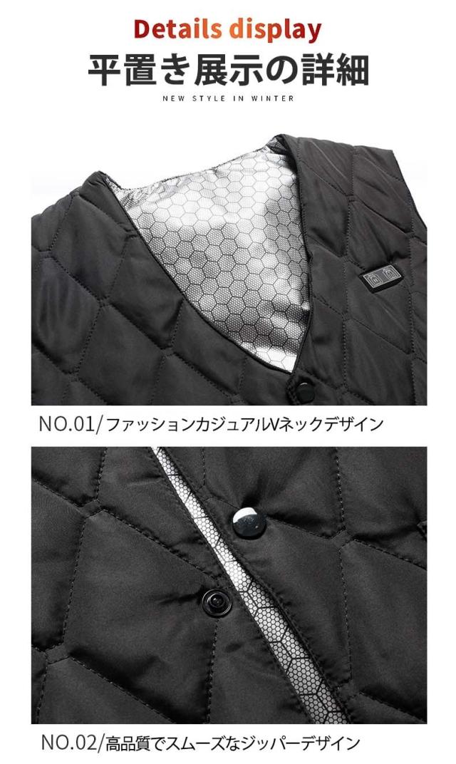 - 着膨れしないので、室内でも自然に着られます。充電がUSBなのも嬉しい。デザインもシンプルで気に入りました。