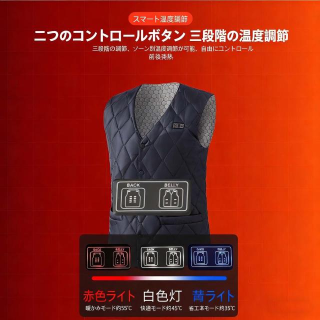 - 3段階調節できて便利。発熱が均一で、すぐに体が温まります。洗濯も問題なく、秋冬の必需品になりました。