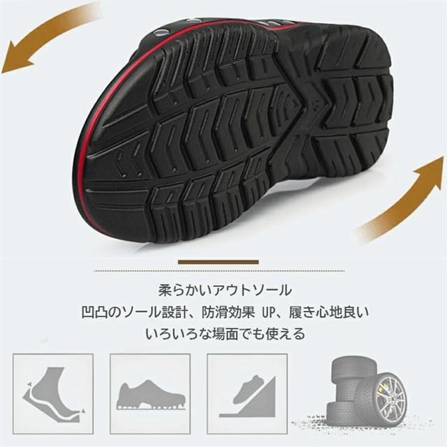 | 特徴 | 【ファッション性抜群】人間工学に基づいた設計で、足裏に滑り止めの粒子デザインが施され、マッサージ効果も期待できます。レザーアッパーと金属スタッズ付きで剥がれにくく、耐久性があります。 【多彩なカラーバリエーション】。柔らかいクッション性と滑り止めのソールを備え、どんなに曲げても変形しません。多彩なカラーで簡単にコーディネートでき、室外の使用はもちろん、室内の使用も可能です。軽量で歩きやすく、スニーカーのようなフィット感を実現しています。上質な素材を使用し、柔らかく肌に優しいです。 【防滑効果】サイドにはリベット加工が施され、頑丈な品質と美しい金属リベットでファッション性も高まっています。柔軟な素材を使用し、足にフィットし、スニーカーのような履き心地です。インソールには通気性のあるデザインが施され、防滑効果もあります。防滑PUアウトソールで摩擦力がアップし、街でも海辺でも快適に歩けます。室内ではスリッパとしても利用可能です。 【丈夫な素材と軽量な履き心地】丈夫な素材を使用し、触り心地も良いです。脱ぎ履きしやすく、定番のデザインで履き心地の良いサンダルを求める方におすすめです。柔らかい素材を使用し、軽量かつ快適な履き心地を実現します。アッパーは艶のあるリベットでソールに固定されており、頑丈で洗練されたスタイルです。シルバーのリベットがアクセントとして効いています。360度曲げても壊れない柔軟なサンダルです。 【足にフィット】足にフィットし、ビーチサンダルなのにスニーカーのような履き心地です。アウトソールには軽量な柔軟素材を使用しており、軽やかな着用感を提供します。インソールは凹凸のある表面で、通気性があり滑りにくいです。暑い夏でも汗が乾きやすく、快適に歩けます。カジュアルやスポーティ、ストリートファッションにぴったりのサンダルです。職場での社内履きとしても快適に使用できるオフィスサンダルです。 【優れた摩擦力】防滑PUアウトソールは摩擦力抜群で、街中や海辺の砂浜でも滑りにくいです。アウトソールに深いしわの設計が施されており、摩擦力がアップします。ビーチやプール、近所への外出時にも重宝します。ふかふかとしたクッション性が高く、快適に着用できます。幅広のストラップは足当たりが良いのが特徴です。 【幅広い場面で使える】コーディネートしやすく、幅広い場面で使えるカジュアルサンダルです。着用を繰り返すことで足に馴染んでいきます。夏を涼しく過ごせるサンダル |