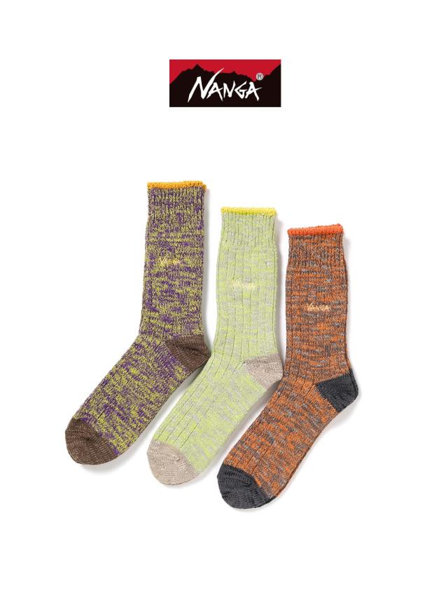 NANGA(ナンガ)COLOR MERANGE CREW SOCKS(カラー メランジ クルーソックス)ソックス 靴下 リブ編み クルーソックス ユニセックス
