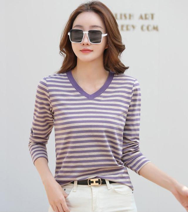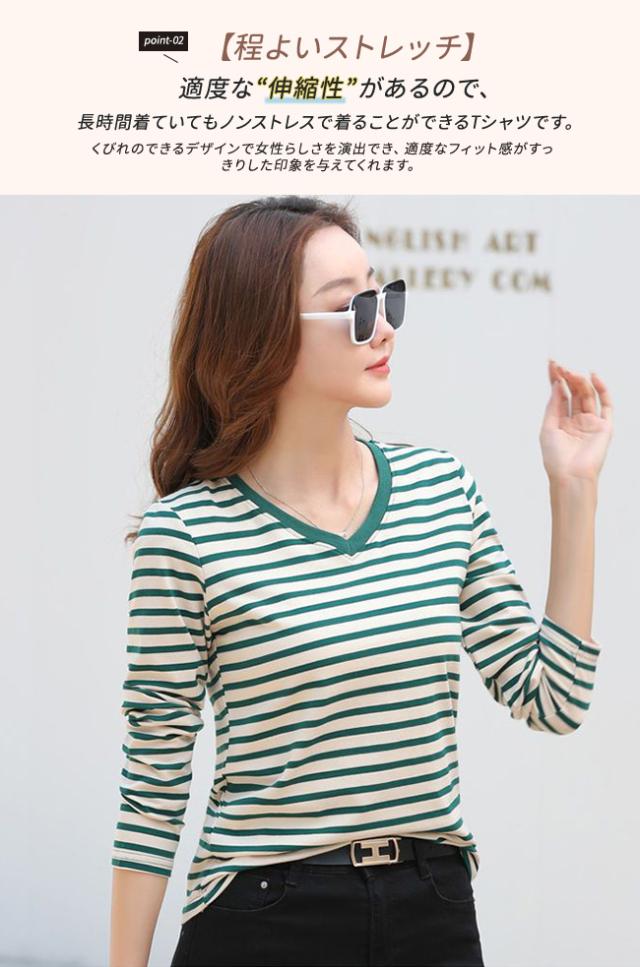 秋新作 ボーダー 長袖 Tシャツ レディース vネックtシャツ長袖 綿 カットソー ロングtシャツ トップス ゆったり おしゃれ 春 秋