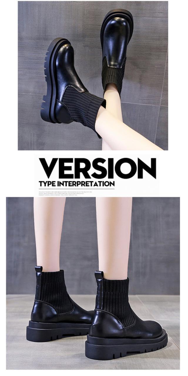 ショートブーツ レディース 2025秋冬新作 欧米風 トレンド 厚底 スリムフィット スリムフィットストレッチソックスブーツ 通気性
