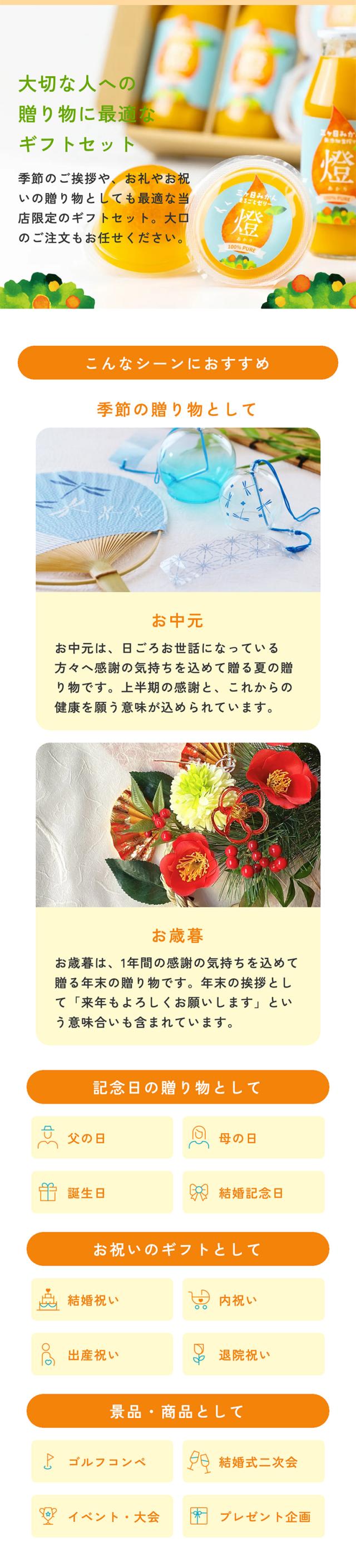 母の日や敬老の日、お中元やお歳暮などのギフトに大変お喜びいただいております。