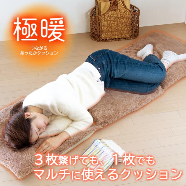 極暖 つながるあったかクッション クッション 大きい あったかグッズ あったか 長方形 正方形 長方形クッション 座布団 椅子 いす イス お尻 冷え 温め あったかい あったか グッズ ふわふわ 冬 防寒 冷え性 暖かい 車 後部座席 寒さ対策 洗える 折りたたみ