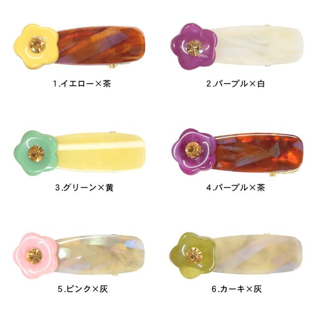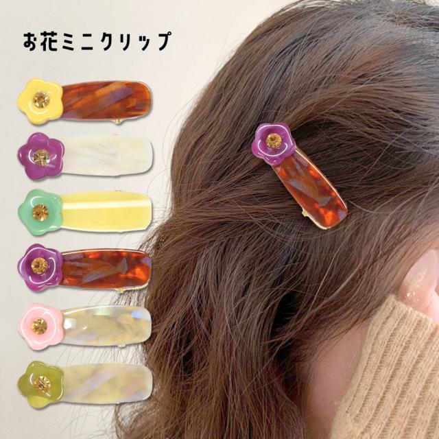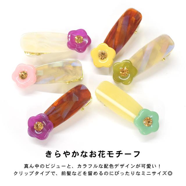 【ヘアクリップ ミニ 花 キラキラ 前髪 小さめ フラワー おしゃれ バイカラー レディース ヘアアクセサリー クリップ ミニサイズ 配色 デザイン ビジュー ストーン お花 かわいい 韓国 アセテート ゴールド マーブル】
