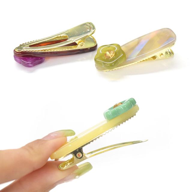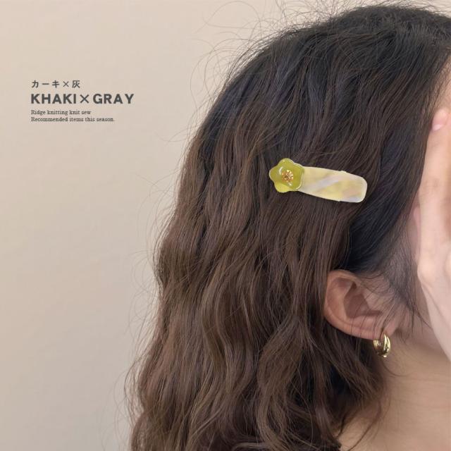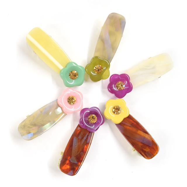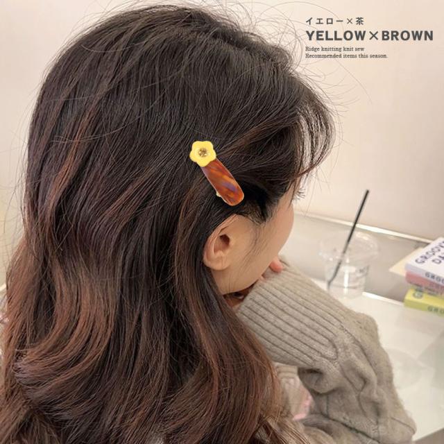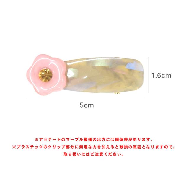 ヘアクリップ ミニ 花 キラキラ 前髪 小さめ フラワー おしゃれ バイカラー レディース ヘアアクセサリー クリップ ミニサイズ 配色 デザイン ビジュー ストーン お花 かわいい 韓国 アセテート ゴールド マーブル (hac366)