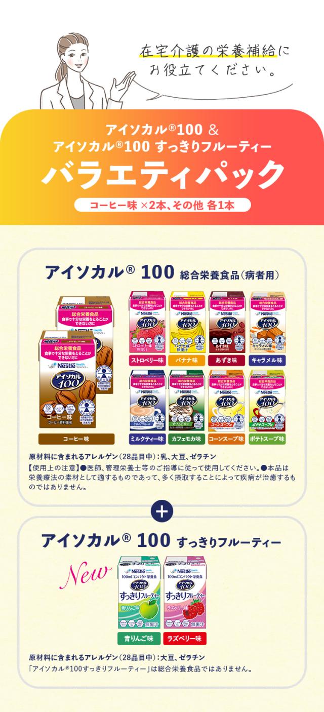 アイソカル 100 バラエティ11種12本セット 100ml × 12本セット(12本×1ケース)【ネスレ 栄養 栄養補助食品 栄養補助飲料 栄養食品 健康食品 健康 飲料 ドリンク たんぱく質 カロリー エネルギー 介護 介護用品 介護食事 ioh2】