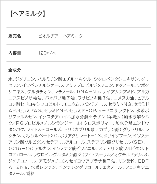 【公式】ビオルチア|【全額返金保証】ヘアミルク 120g ×1本 洗い流さないトリートメント アウトバストリートメント レディース メンズ ヒアルロン酸 CICA グルタチオン レチノール PDRN ナイアシンアミド うねりケア ヘアケア