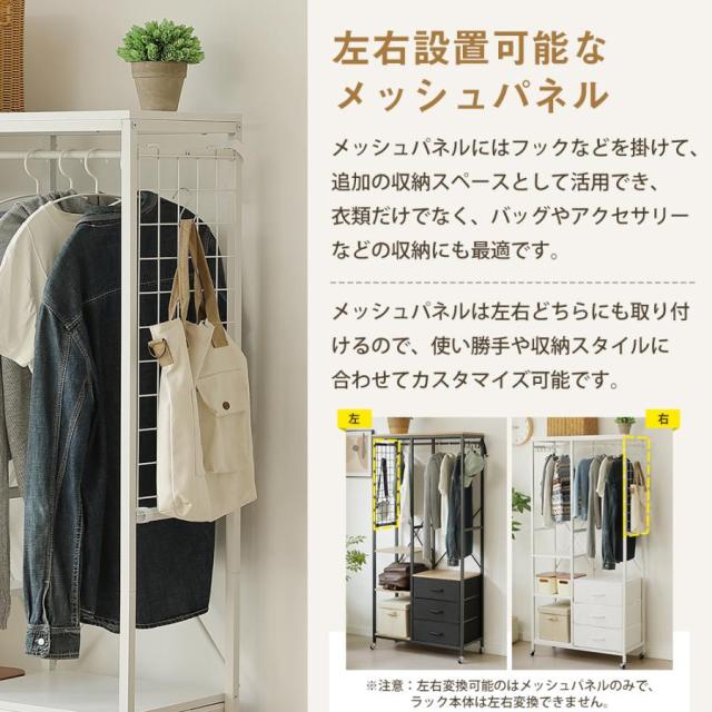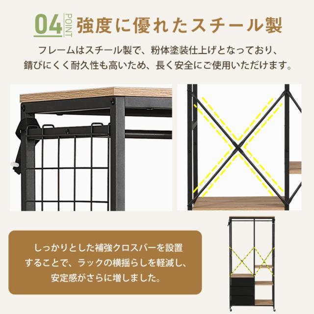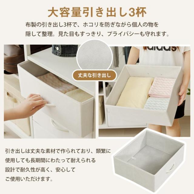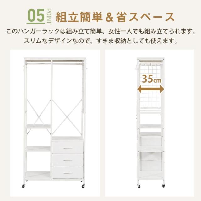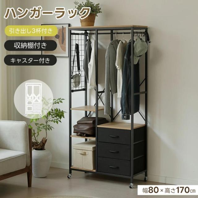 「クーポン配布中」ハンガーラック 衣類収納ラック 衣類収納ハンガー 収納棚付き キャスター付き 洋服掛け 引き出し付きスリム 幅80cm 奥行35cm タンス付き ワードローブ 衣装棚 押し入れ 収納ラック 大容量 頑丈