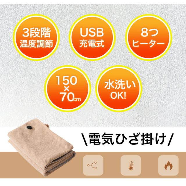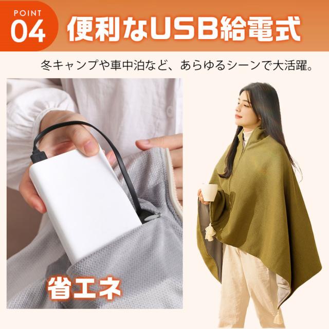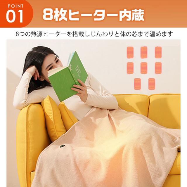 電気毛布 電気ひざ掛け 電気ブランケット 着る毛布 冬 暖かい USB給電式 8枚ヒーター 5WAY 3段階温度調節 膝掛け 寒さ