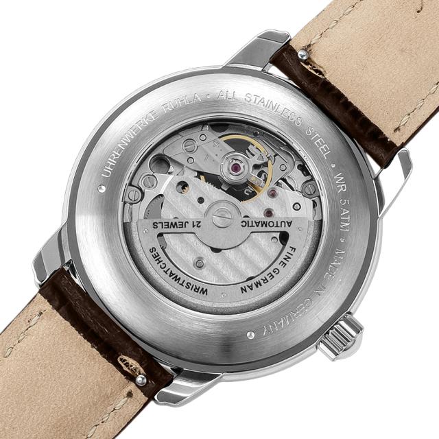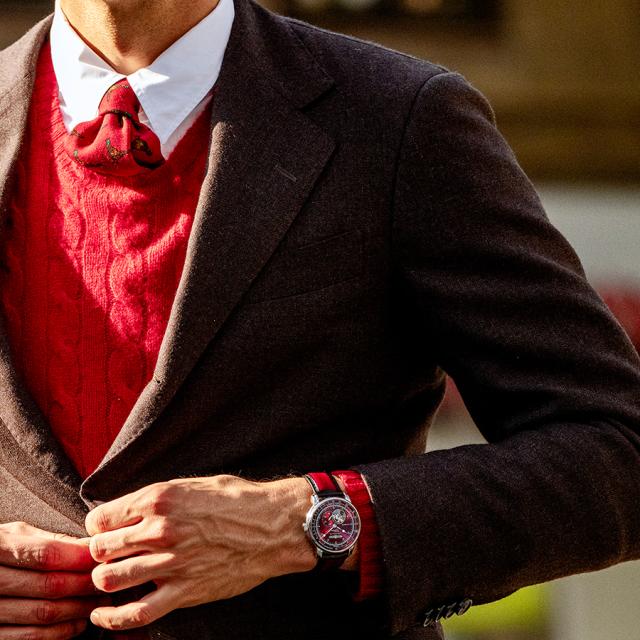 深みのあるレッドダイヤルは、角度によって光の表情を変え、クラシカルな雰囲気にモダンな華やかさをプラス。オープンハート仕様により、ムーブメントの鼓動を文字盤から楽しめ、裏蓋のシースルーバックからも精緻な機械の動きを眺めることができます。