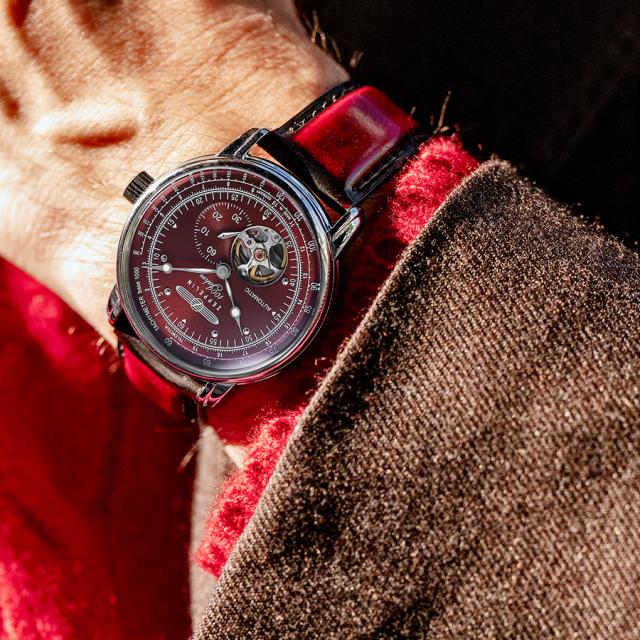 ツェッペリン 100周年記念シリーズの人気モデル「オープンハート・オートマチック」に、日本限定のレッドモデルが登場。