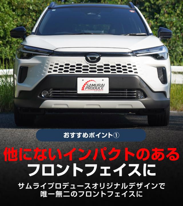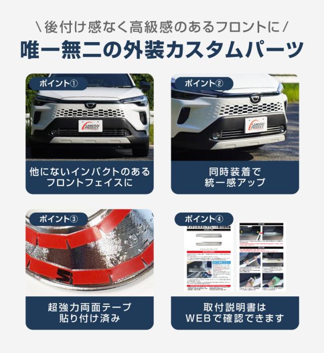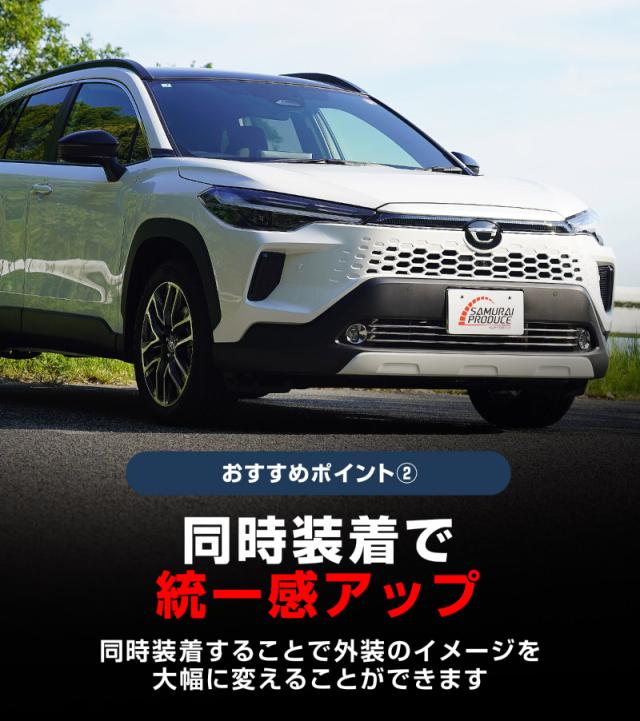 新型カローラクロス 2025年5月マイナーチェンジ後モデル専用のフロントフェイスをトータルでドレスアップできる専用パーツセットです。