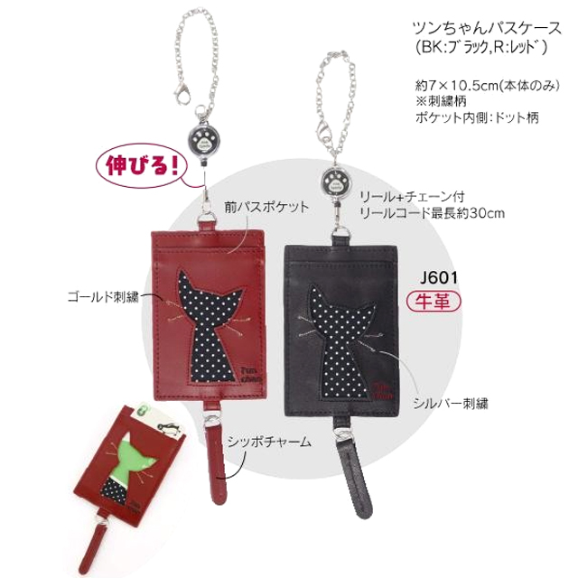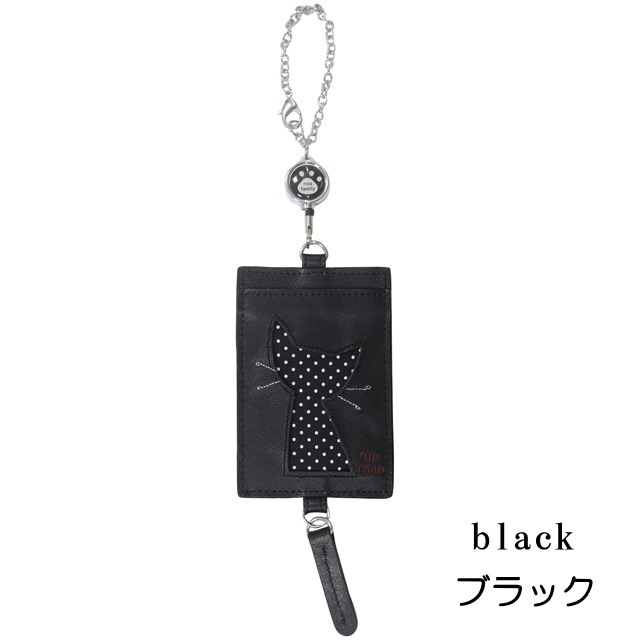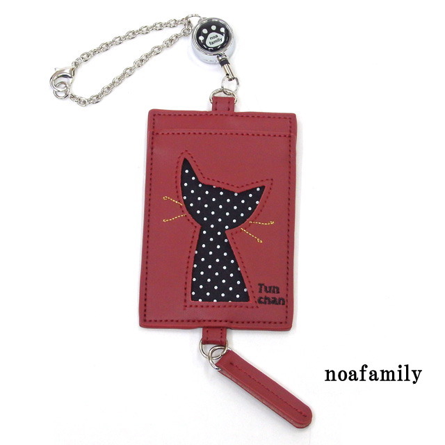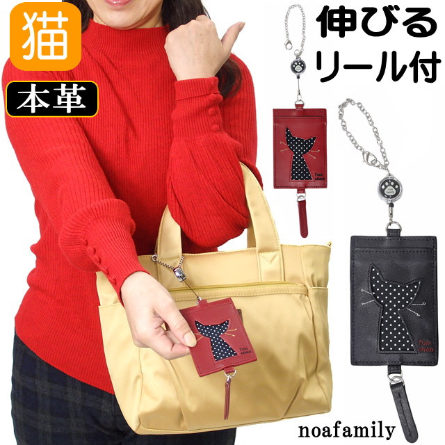 パスケース リール付き 定期入れ チェーン カード 猫 ネコ レディース キャラクター おしゃれ かわいい ノアファミリー 猫柄 ギフト プレゼント
