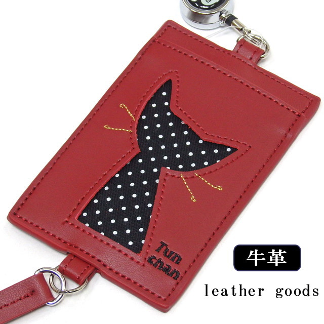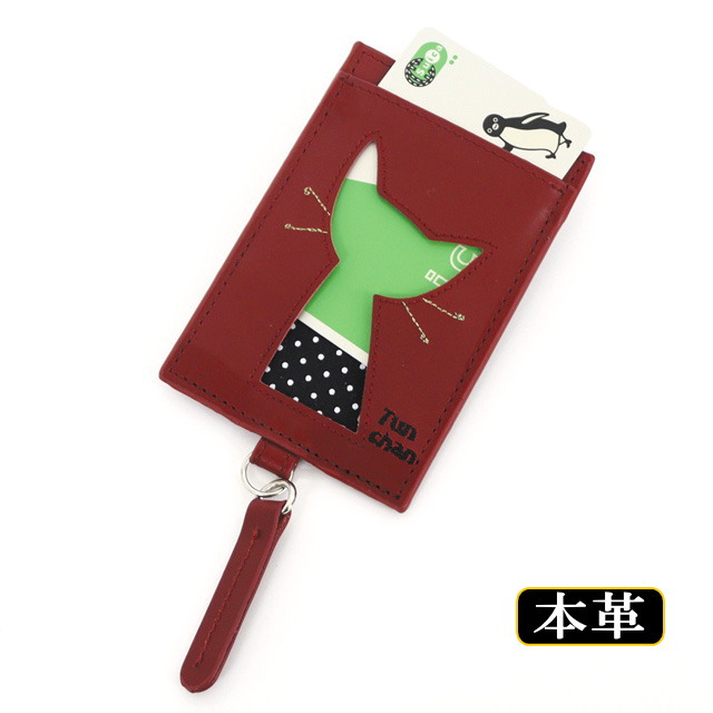 本革 牛革 ICカードケース 電子マネー プリペイドカード スイカ イコカ かわいい 通勤 通学猫の本革リールパスケース