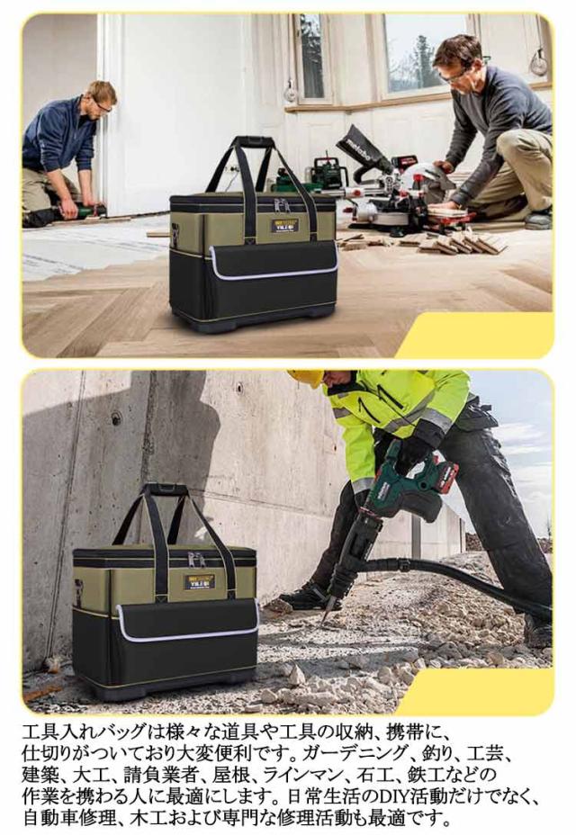 ツールバッグ 大容量 工具バッグ ツールボックス ショルダー 肩掛け 手提げ 大口 自立 おしゃれ 工具 収納 かばん DIY 工具入れ 工具差し 工具収納 作業道具 大工道具 修理 建設 運搬用 工芸 建築 大工 防水 大型 ワークバッグ 撥水 耐摩耗 ショルダーバッグ