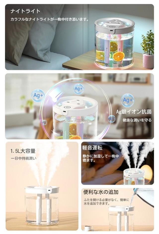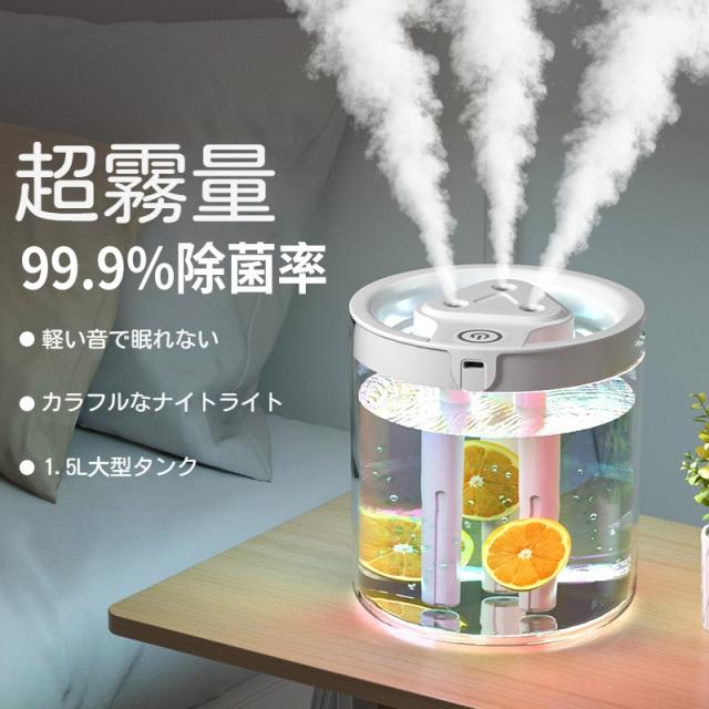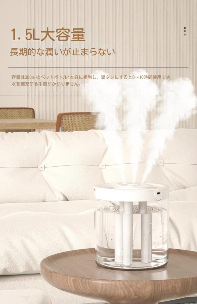 加湿器 卓上1500ml大容量 おしゃれ USB給電 加湿器 連続加湿約10時間 空焚き防止 かわいい オフィス 静音 6-10畳対応 ペットボトル ミニ加湿器寝居 7色LEDナイトライト付 コンパクト微細ミスト子供部屋 リビング 車載用 寝室 家庭