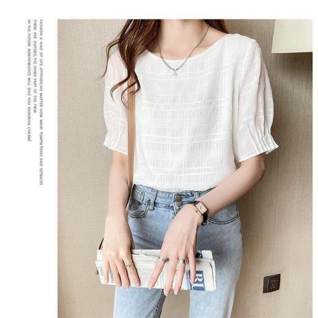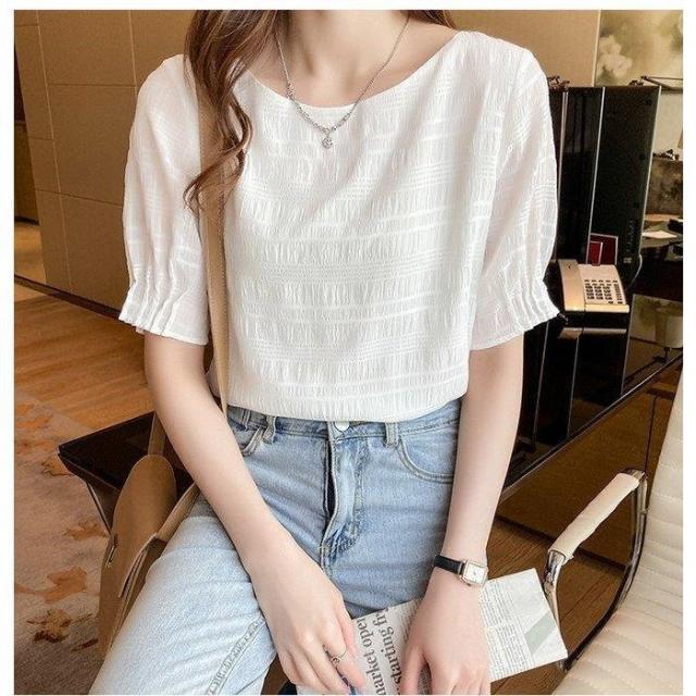 ブラウス 半袖トップス 40代 春夏 オシャレブラウス 白シフォンブラウス レディース パフスリーブブラウス おしゃれ ブラウス 通勤 OL ゆったりtシャツ