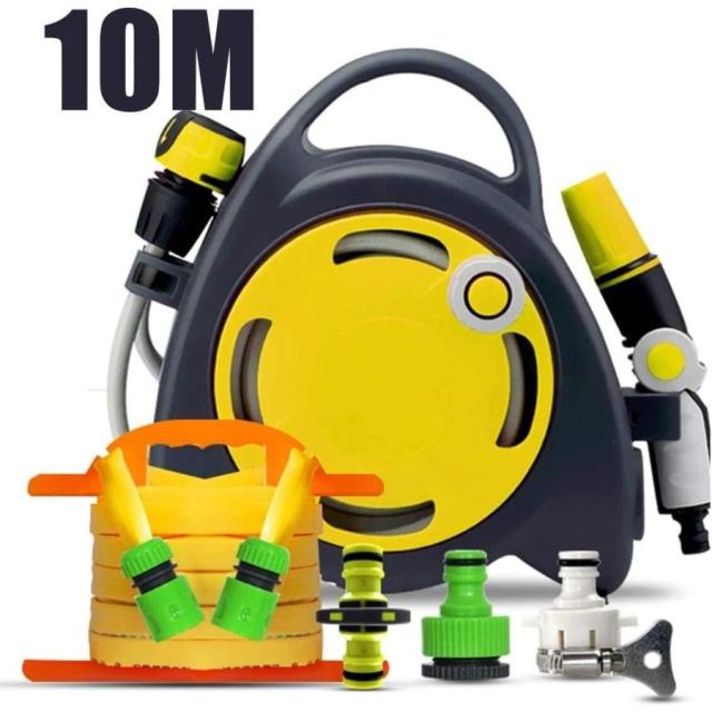 ホースリール 水道ホース 壁掛け式 ホースパイプリール 10m 自動巻き戻し 散水ホース 庭用軽量ホースリール 壁ガーデンホースリール 多機能 洗車水ガンセット ホ