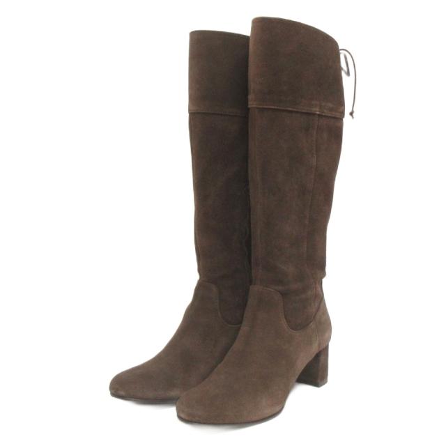 【中古】アシックス ジーロ ロング ブーツ スエード ヒール サイドジップ レースアップ 茶 ブラウン 23.5?p ■FF