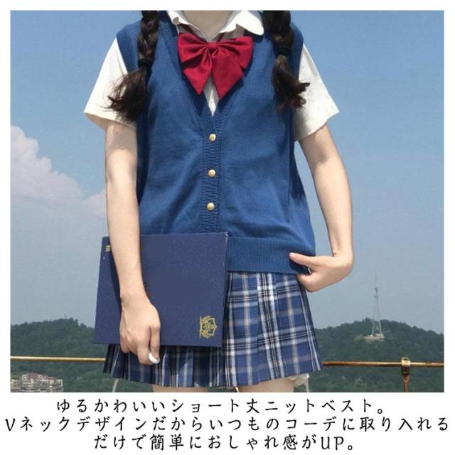 | 選べる2タイプ!柔らかなニット素材で素肌に触れても全くチクチクせず、軽いのに暖かい。 ゆるかわいいショート丈ニットベスト。 Vネックデザインだからいつものコーデに取り入れるだけで簡単におしゃれ感がUP。 前ボタン全開タイプなのでカーディガンのように羽織ったりもOK。 Vネックのデザインで、インナーのシャツの襟がきれいに見えます。ブラウスや制服とも相性抜群します。 無地でシンプルなデザインなので、普段はもちろん色々なシーンで着用できるべストです。 年齢を選ばず、 学生 男子 女子高生の制服にも、普段使いにもお使いいただけます。 | |