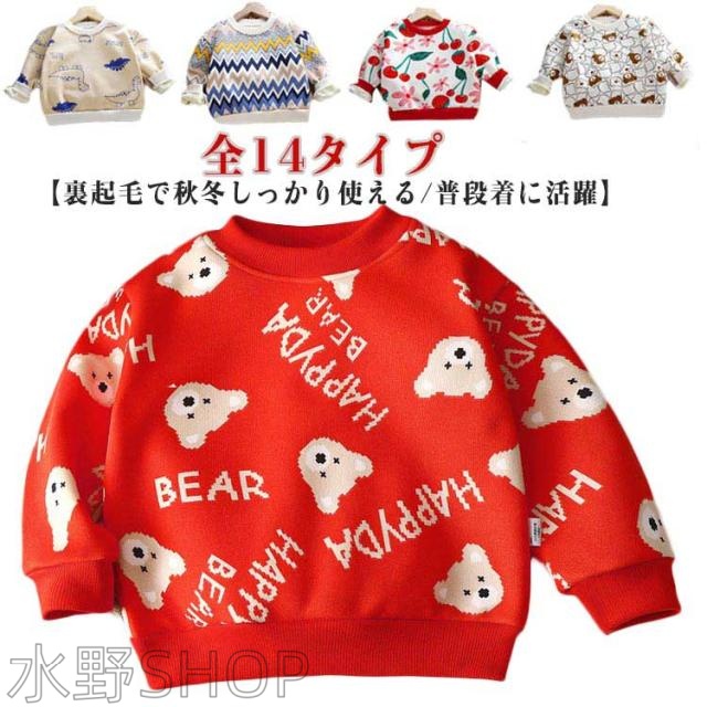キッズ 女の子 くまさん 暖かい 裏起毛 スウェット トレーナー 秋 男の子 春 ラウンドネック 長袖 アニマル柄 ベビー服 ウサギ キッズ 冬 キッズ 80cm 90cm クリスマスツリー 110cm 120cm 130cm 140cm
