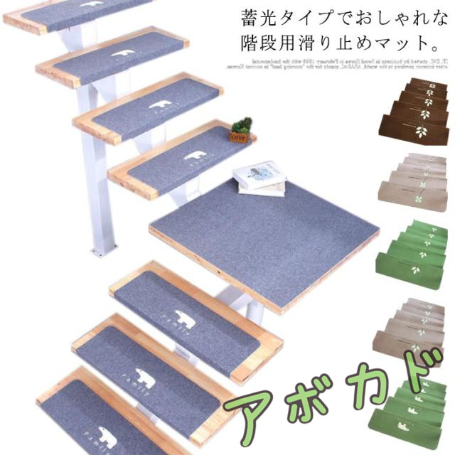 | 蓄光タイプでおしゃれな階段用滑り止めマット。 貼るだけでピタッと吸着する階段滑り止めマット。 小さなお子様やご年配の方の転倒防止や足音対策にオススメの階段用滑り止めマット。 カーペットのようなループ風の素材はクッション性が高い。 光の吸収・発光を何度でも繰り返す。 洗濯機で丸洗いできるので、清潔にお使い頂ける。 ハサミやカッターなどで、簡単にカットできるので、好きな場所にお使い頂ける階段用滑り止めマットです。 折り曲げ付きなので、階段の角までしっかりとカバーする階段用滑り止めマットです。 裏面のフィルムを剥がして、階段に貼り付けるだけの階段用滑り止めマット。剥がしたあともベタ付きません。 | |
