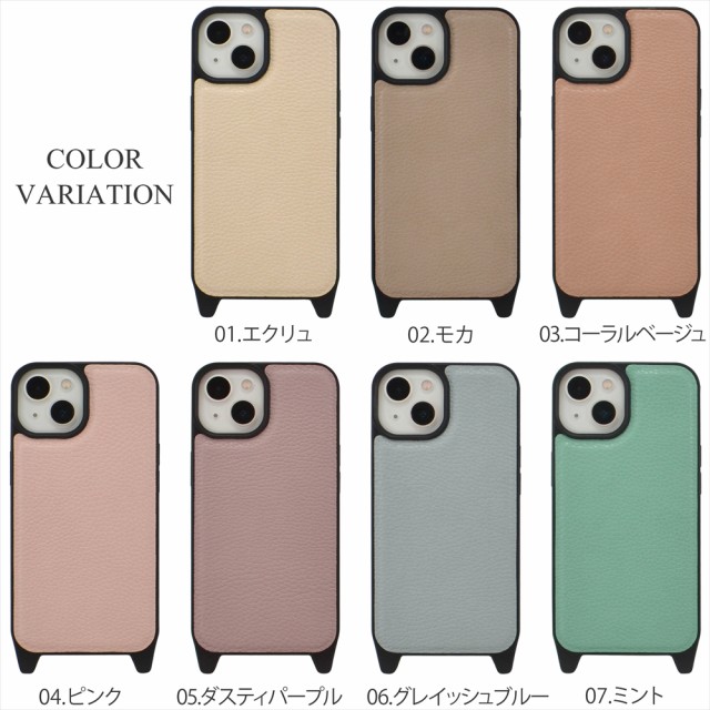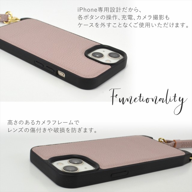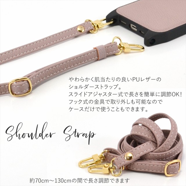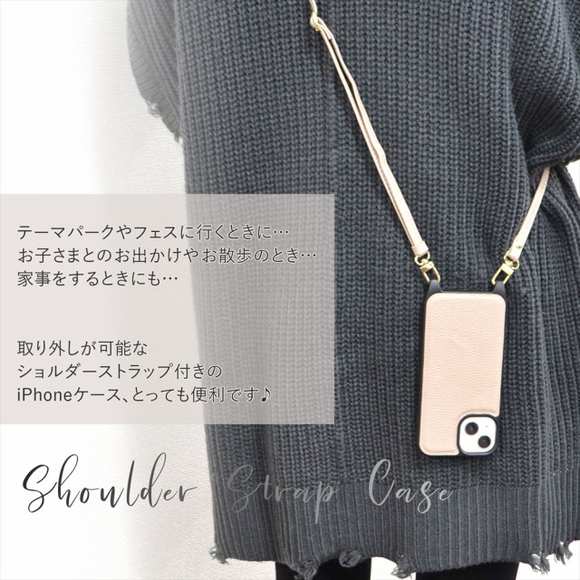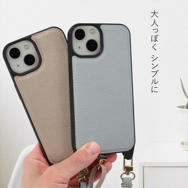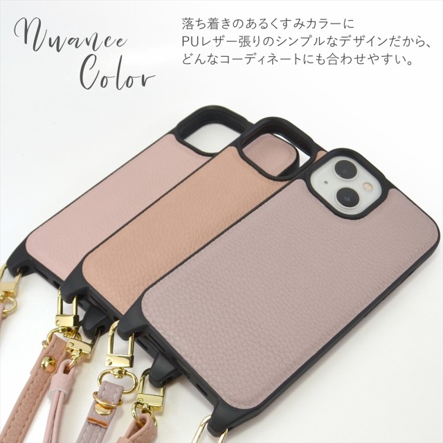 ●大人可愛いくすみカラーのショルダーストラップ付きiPhoneケース。