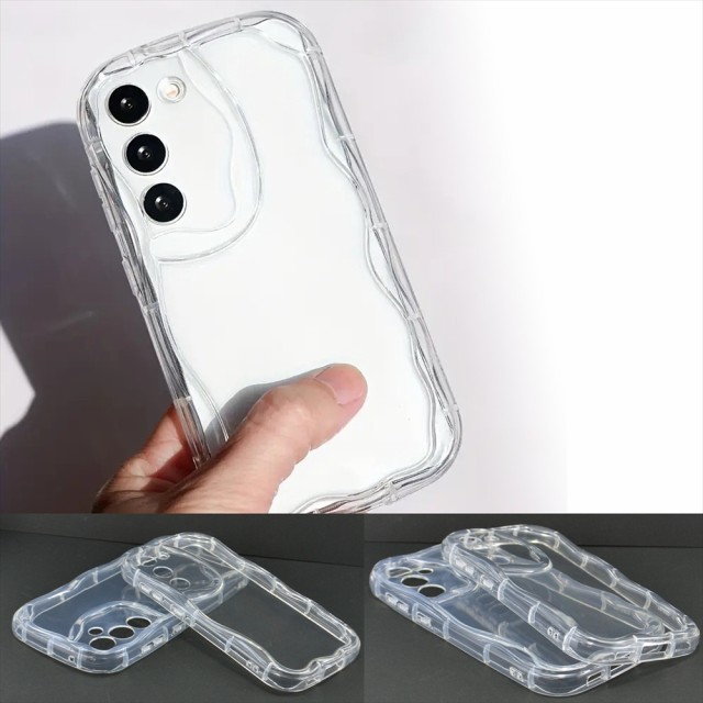 Galaxy S25 S24 S23 S22 FE ultra plus スマホケース A55 A25 35 ウェーブ うねうね iPhone16 iPhone15 ケース iPhone14 13 12 11 Pro MAX SE2 SE3 クリア TPU なみなみ 透明 推し活 おしゃれ かわいい 収納ケース 波型 もこもこ 波型フレーム 背景クリア シンプル 持ちやすい