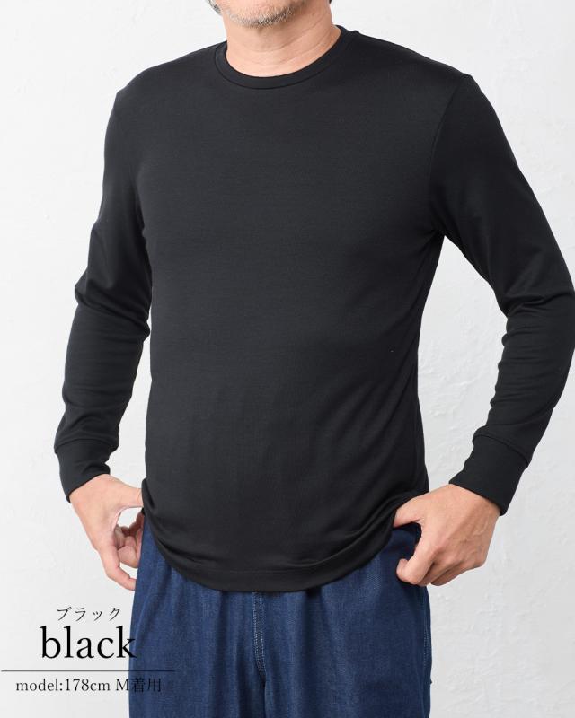 黒 オフ 白 長袖 クルーネック 日本製