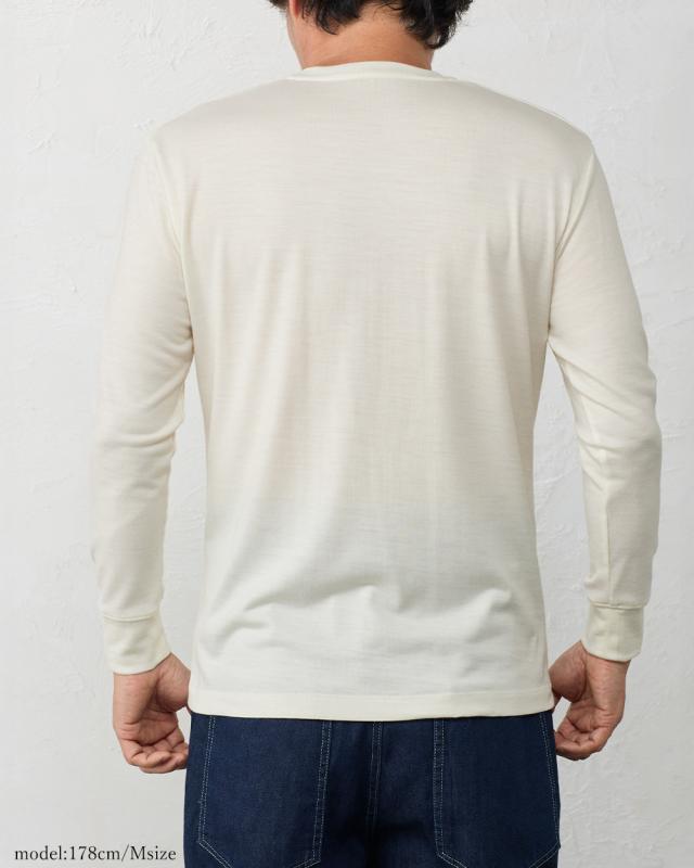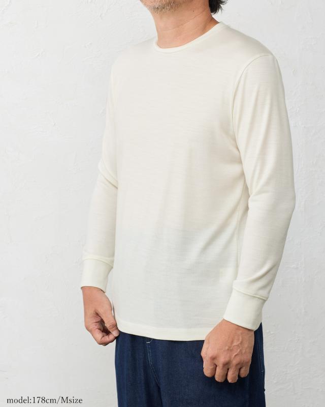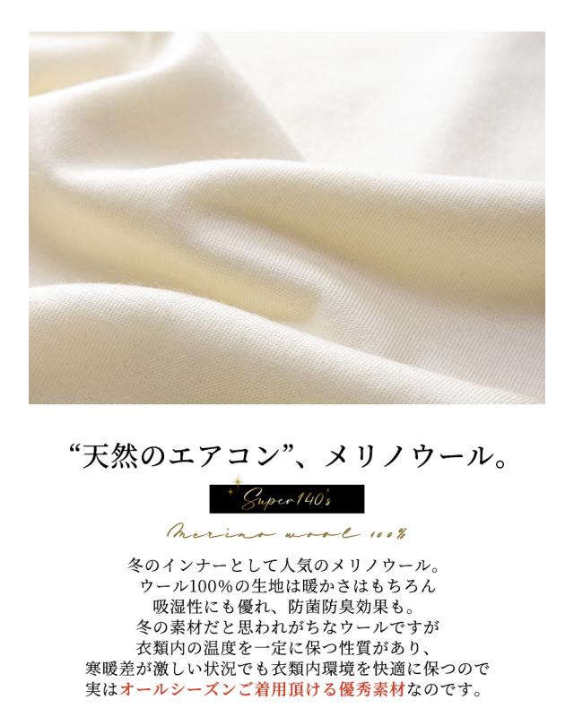 | 商品詳細/その他 | 繊細で貴重なメリノウール100%のベーシック長袖カットソー。着用する事によって気になる臭いや、汗染み、バストトップが透ける問題を解決します。新しい時代の紳士のエチケット |