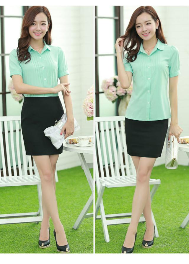 ベーシックなデザインのシャツブラウスは、オフィススタイルを上品シンプルに演 出!