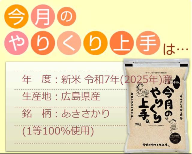 ◆12月のやりくり上手は「広島県産 あきさかり」です! あきさかりは、「コシヒカリ生誕の地」福井県で生まれ、コシヒカリとキヌヒカリの孫にあたる福井県の奨励品種です。 粘りのある食感と上品な甘みが特徴のお米です。 | |