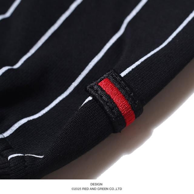 左袖には、創業時から変わらない赤いラインをモチーフとしたブランドロゴ刺繍を配置。
