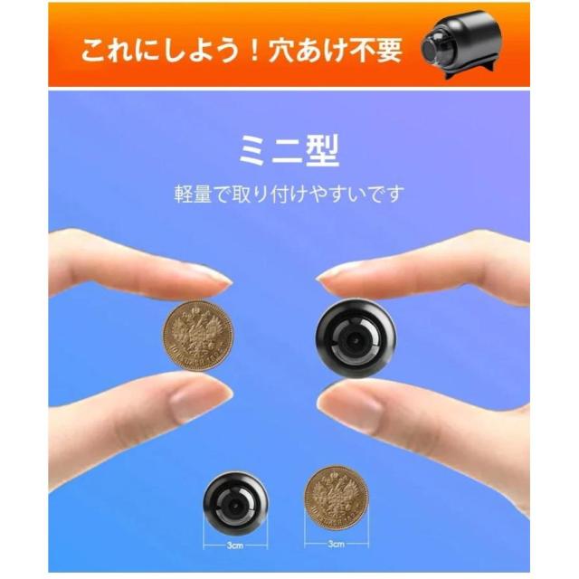 遠隔確認機能付きスマート防犯カメラ【Wifi 防犯カメラ】カメラ WiFi MINI 小型 配線が必要 高画質 リアルタイム遠隔確認 高画質