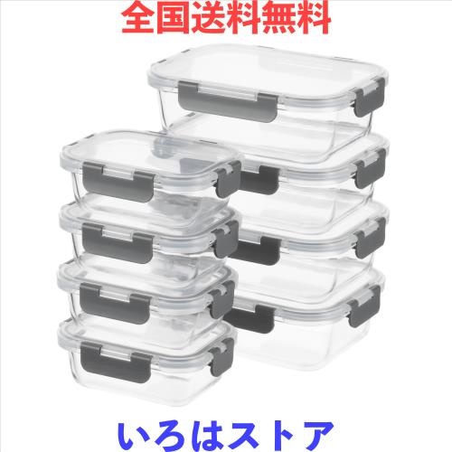 S SALIENT 耐熱ガラス 密閉 保存容器 パック&レンジ 食洗機対応 8個セットタッパー 長方形 グレー