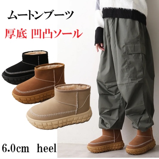 存在感のある凸凹厚底ソールが目を惹くムートンブーツ!