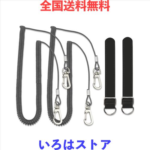 釣り竿 尻手ベルト ロープ付き スパイラルコード ワイヤー入り 290cm セット (ブラック)