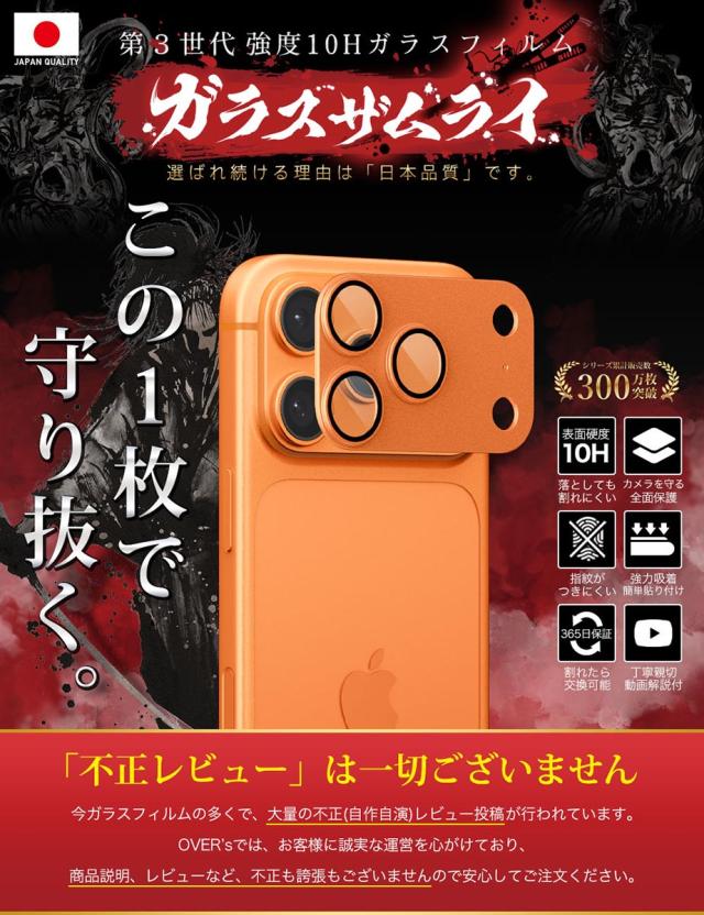 iPhone17 Pro カメラフィルム カメラカバー ガラスフィルム 金属 アルミ レンズガード 全面保護 10H ガラスザムライ カメラ保護 アイフォン カメラレンズ 保護フィルム OVER`s オーバーズ