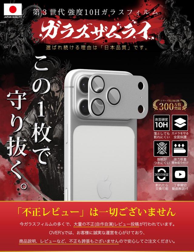 iPhone17 Pro Max カメラフィルム カメラカバー ガラスフィルム 金属 アルミ レンズガード 全面保護 10H ガラスザムライ カメラ保護 アイフォン カメラレンズ 保護フィルム OVER`s オーバーズ