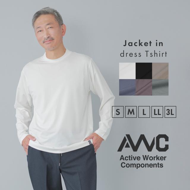 Tシャツ メンズ ビジネス 長袖 クルーネック カットソー 仕事 通勤 オフィス 白ティー 白T ビズ T ジャケット 吸水速乾 スタンド ドライ ストレッチ AWC エーダブルシー ブランド S M L LL XL 3L ブラック グレー ホワイト
