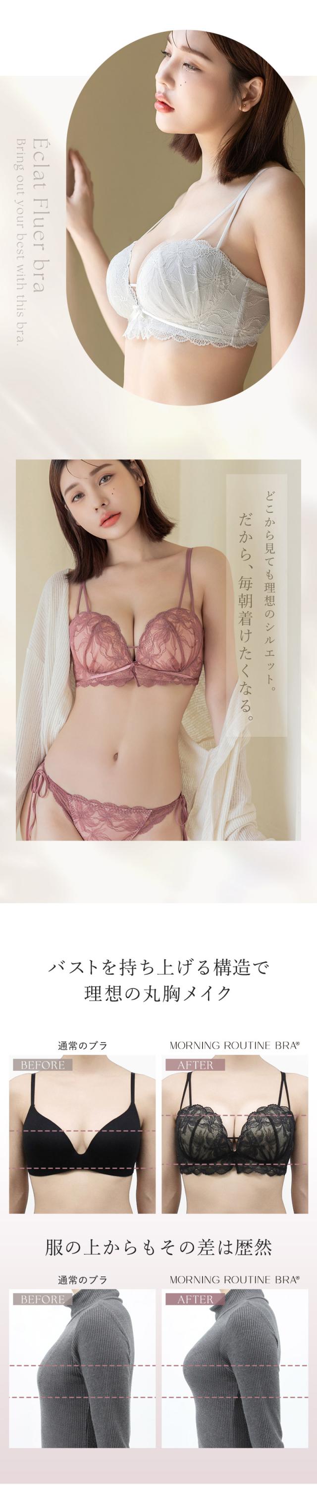 《モーニングルーティンブラ》エクラフルールブラ&ショーツ【グラマーサイズ】大きいサイズ ブラ ショーツ ブラジャー ノンワイヤー 補正 盛り 谷間 寄せ モールドカップ レディース インナー 下着 上下セット【秋新作】