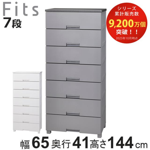 チェスト フィッツチェスト 6507 7段 Fits 幅65×奥行41×高さ144cm ( タンス 引き出し 収納 衣類収納 日本製 完成品 フィッツ プラスチック 引き出しロック 衣装ケース リビング収納 洋タンス 収納ケース 木製天板 ストッパー付き )