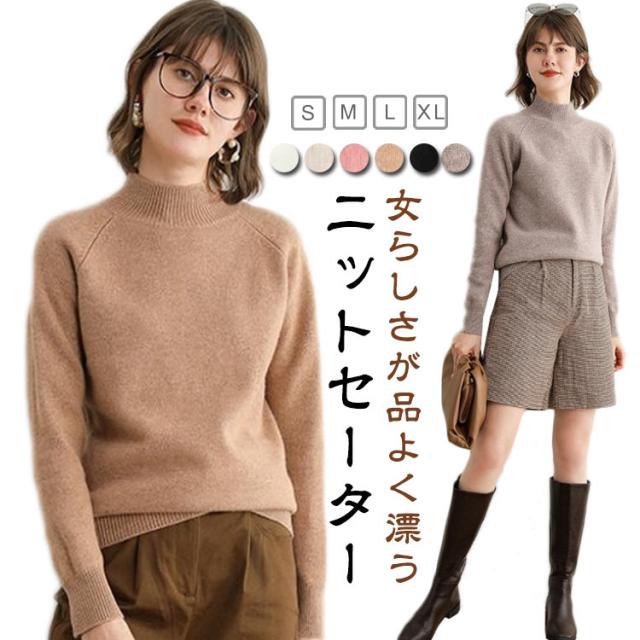 ニットセーター ハイネック セーター 厚手 ニット レディース トップス タートルネック プルオーバー チュニック カシミヤタッチ アウター 春 秋 冬 ストレッチ 長袖 ゆったり ショート丈 防寒 無地 オフィス 通勤 S M L XL 春秋冬 大きいサイズ 送料無料