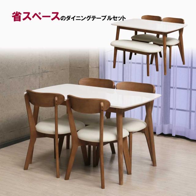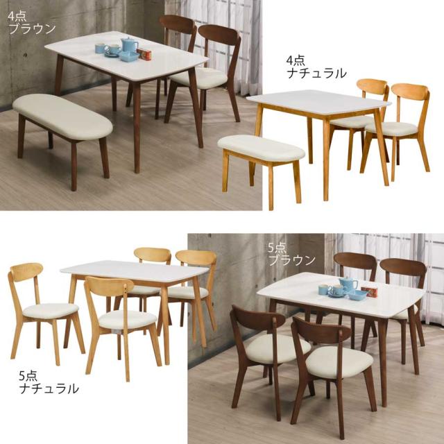 ダイニング 5点セット 幅120cm 長方形 長方形テーブル ベンチ チェア 4人掛け 4人用 ダイニングテーブル 食卓 おしゃれ シンプル ダイニングセット ダイニングチェア ナチュラル ブラウン 木製 テーブル 机 椅子 北欧 コンパクト モダン 鏡面 エナメル塗装