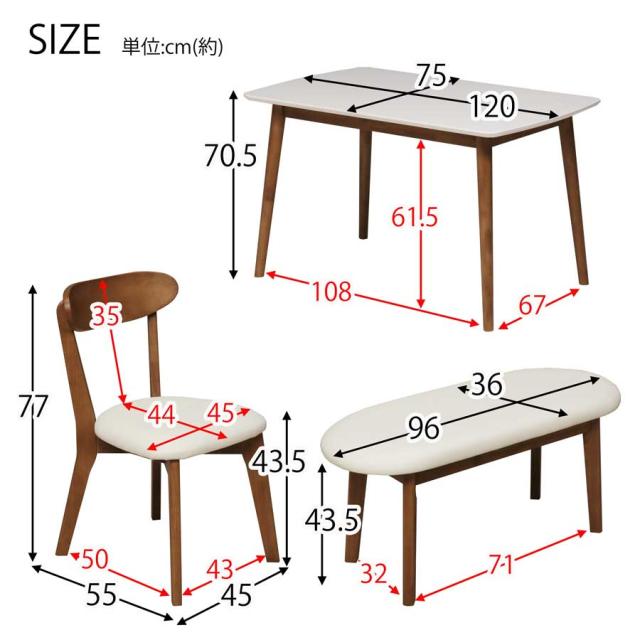 ・テーブル:幅 120cm × 奥行 75cm × 高さ 70.5cm